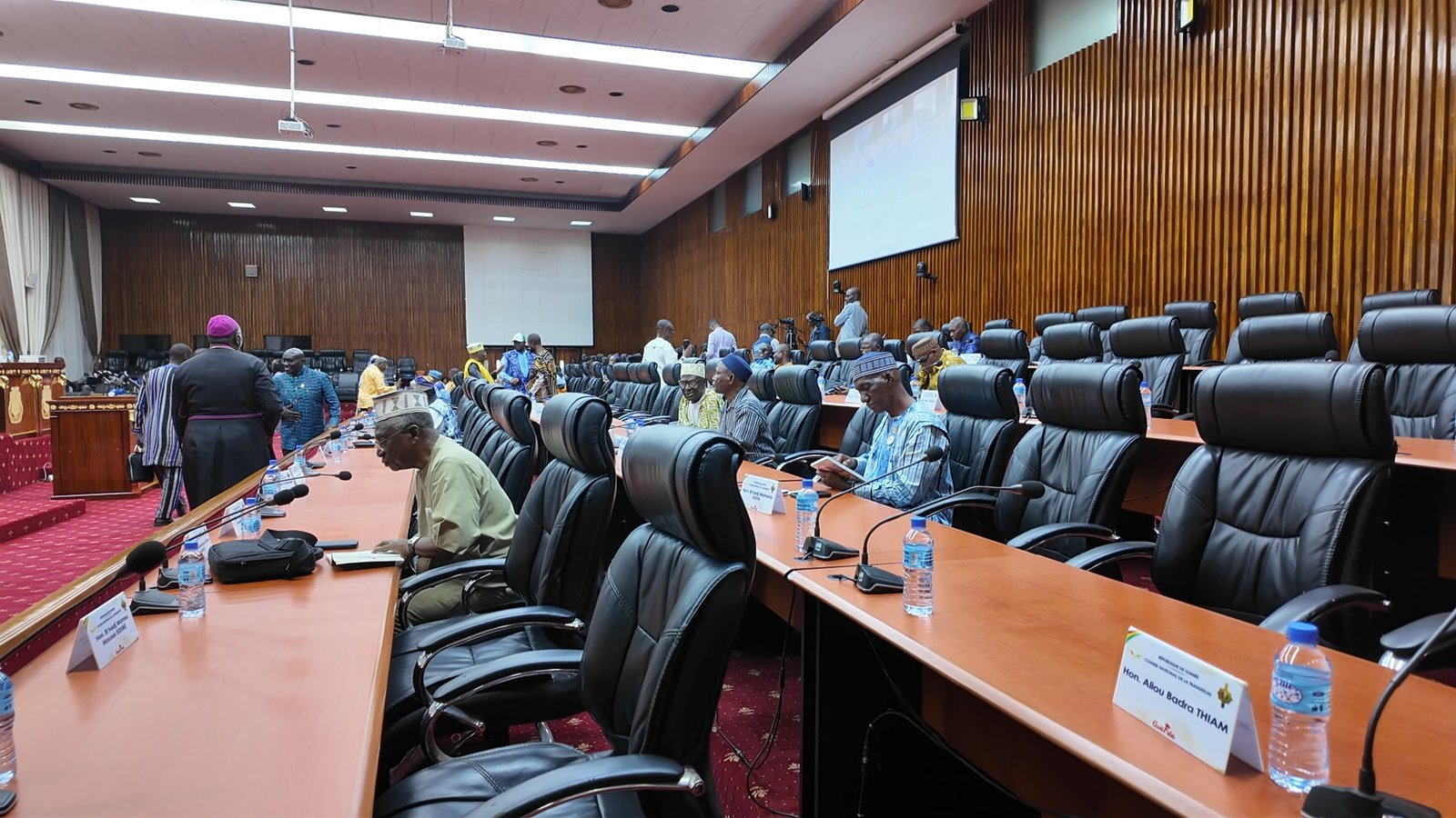 Dans la salle, les échanges informels vont bon train entre les membres du CNT, traduisant l’importance des enjeux liés à ce projet de budget. Documents en main, certains conseillers peaufinent leurs interventions tandis que d’autres consultent les dernières données financières transmises par les commissions techniques.