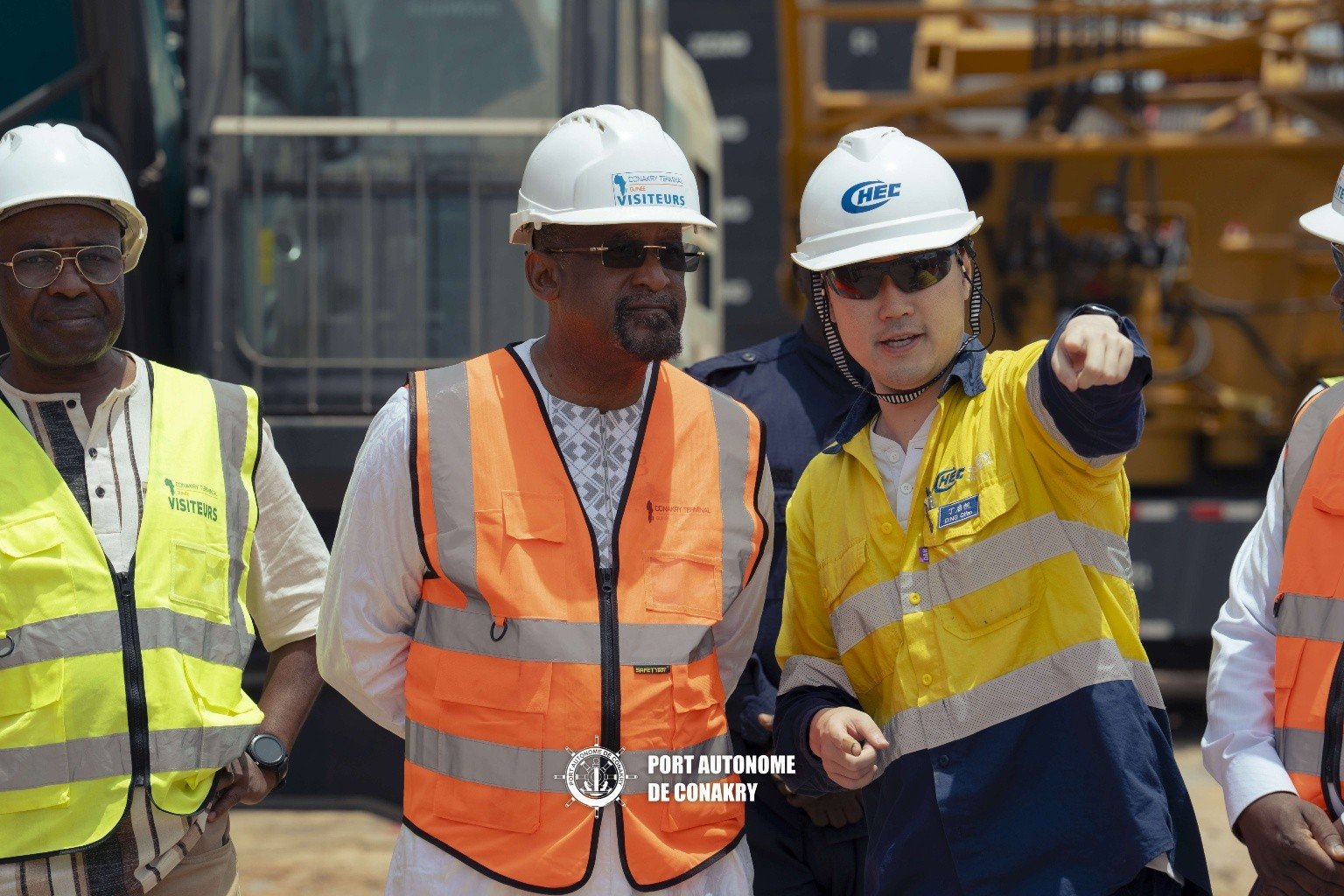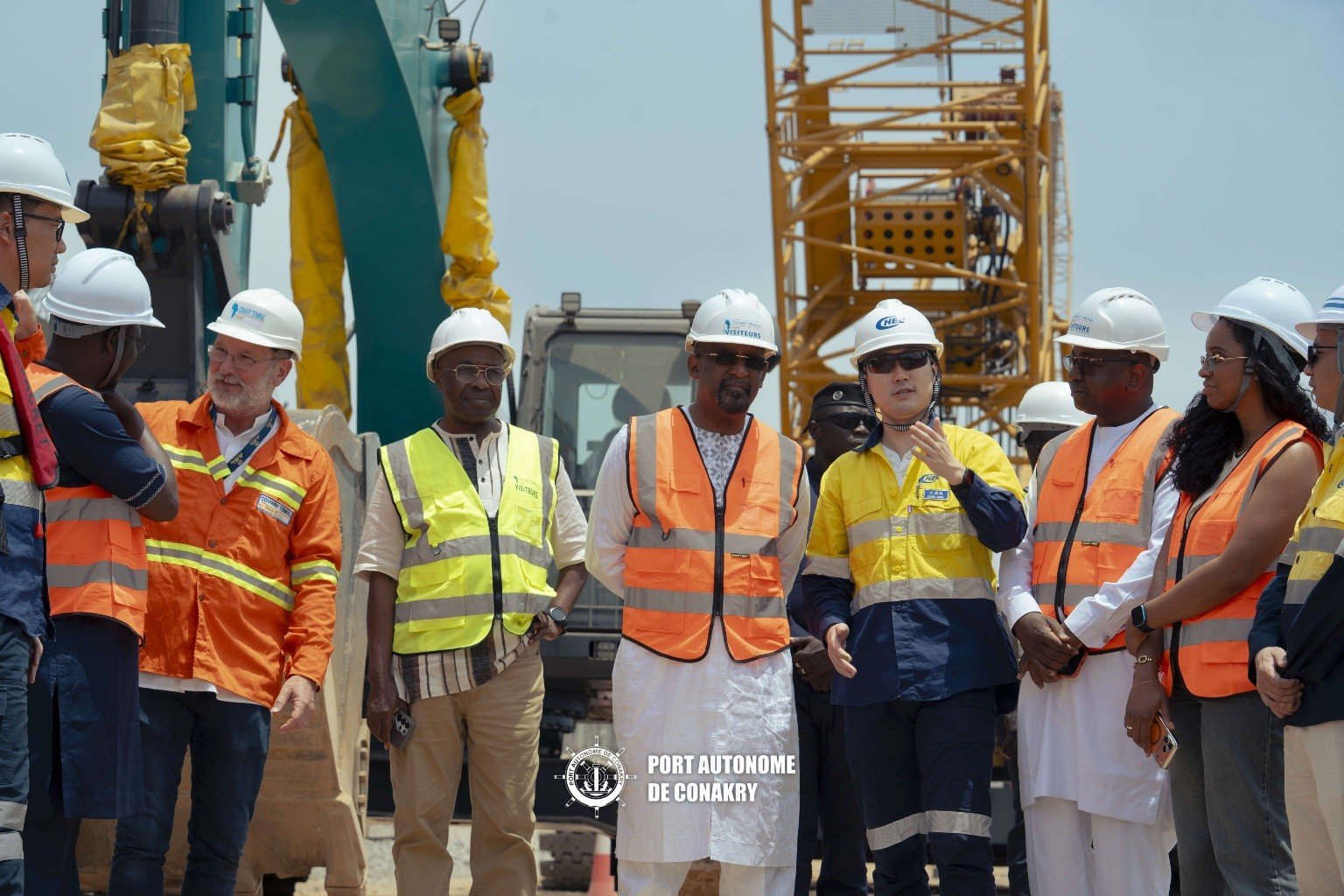 Sous la conduite de Monsieur Aly Koita, Directeur Général du Port Autonome de Conakry, en présence de Monsieur Emmanuel Mason, Directeur Général de Conakry Terminal, et de Monsieur Diallo Saikou Oumar, Président de la Chambre de Commerce de Matam, une visite officielle de terrain a été effectuée afin de constater le lancement effectif des travaux du Quai 14.